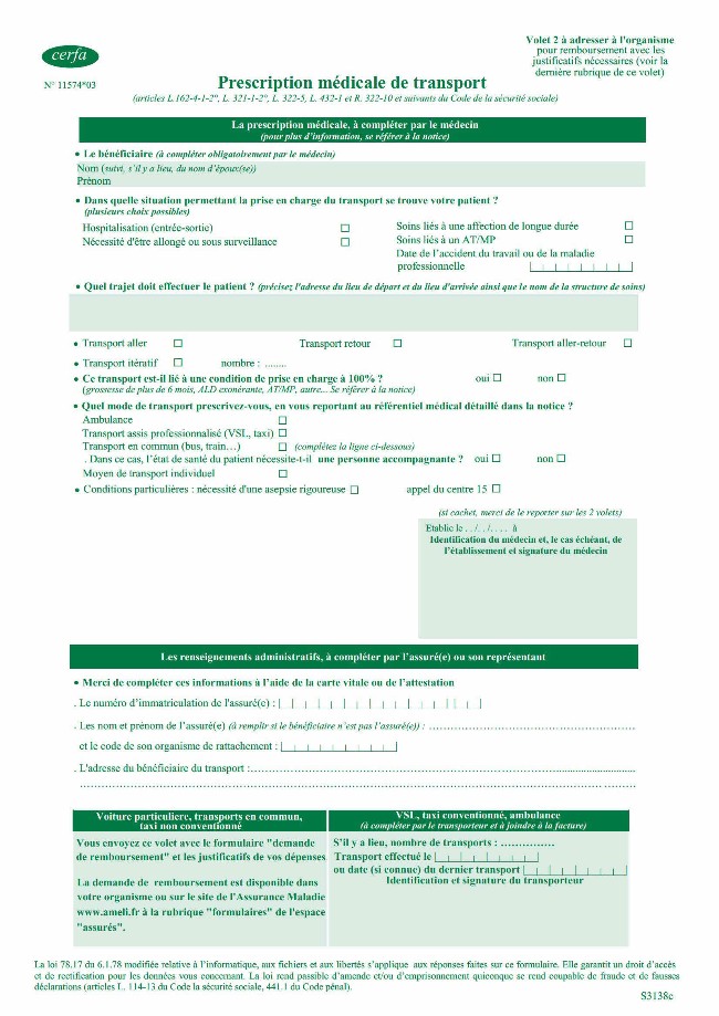 remplir un bon de transport, également appelé prescription médicale.
